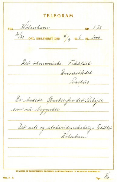 Månedens billede er valgt, fordi det 1. august 2011 er 75 år siden, 'dobbeltfakultetet' Det Økonomiske og Juridiske Fakultet blev oprettet ved Aarhus Universitet.