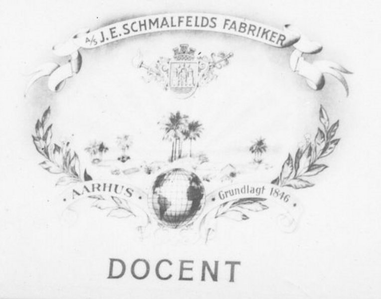 Man kan umiddelbart synes, at et gammelt reklamebillede fra en lokal tobaksfabrikant ikke kan have meget at gøre med den aarhusianske universitetshistorie, men her skal man lige lægge mærke til produktnavnet på indersiden af cigarkassen: DOCENT!