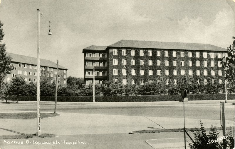 Som Månedens billede har vi valgt et postkort med Ortopædisk Hospital som motiv. Ortopædisk Hospital blev opført på hjørnet af Ringgaden og Randersvej i årene 1938-1940 og blev indviet 7. december 1940.