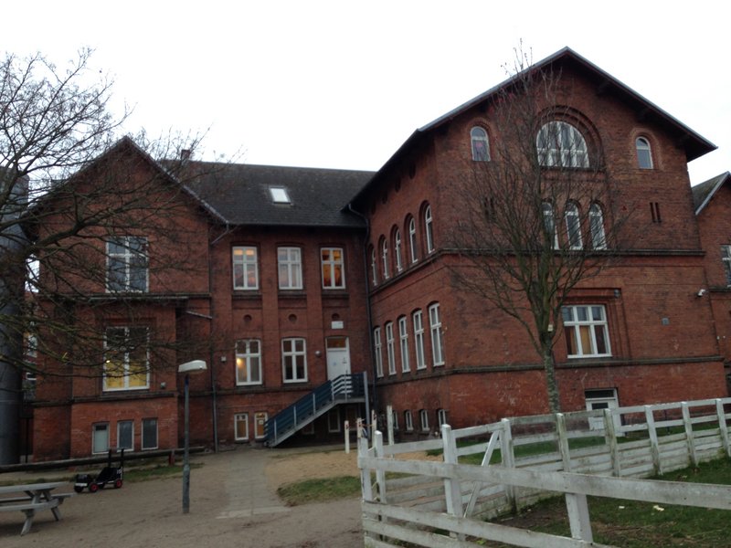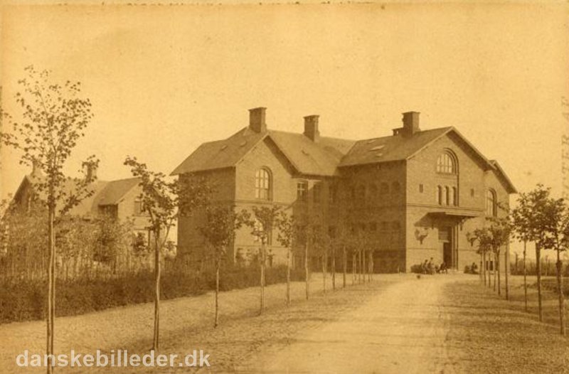 Aarhus Amtssygehus indledte sin virksomhed i bygningen herover i 1882; bygningen, der er tegnet af arkitekt Thomas Arboe, blev senere (1949) en del af Sankt Anna Gades Skole, og senere igen dannede den ramme om Fredriksbjerg Beboerhus, inden den blev revet ned i 2014.