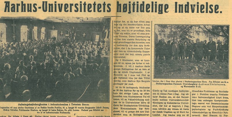 11. september 1928 - for 85 år siden - indledte Universitetsundervisningen i Jylland isin virksomhed. Indvielsen var en begivenhed, der dagen efter fyldte den lokale presses forsider, og vi har som Månedens billede valgt at vise en af disse, nemlig Aarhus Amtstidendes.
