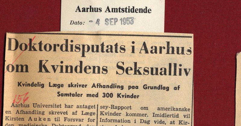 Da cand.med. Kirsten Auken den 24. september 1953 - altså for 60 år siden - forsvarede sin afhandling med titlen Undersøgelser over unge kvinders seksuelle adfærd, blev hun den første kvinde, som forsvarede en doktordisputats ved Aarhus Universitet.