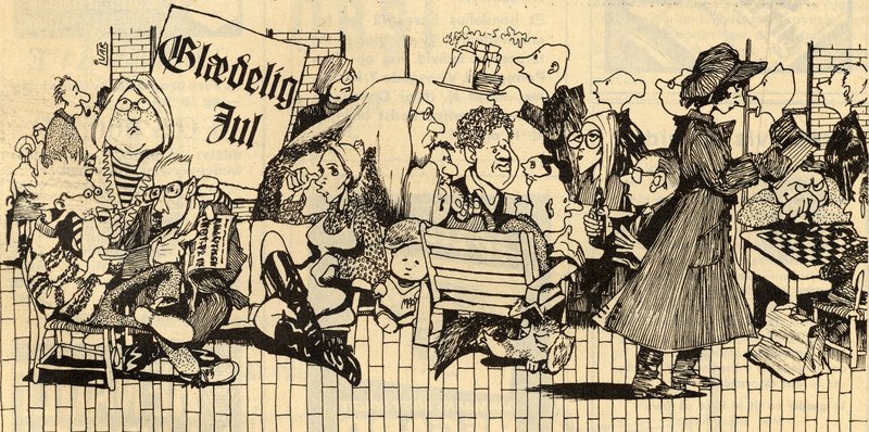 Det er blevet en tradition, at "Månedens billede" i december har noget med julen at gøre og således også i år, hvor vi i decembernummeret anno 1969 af studenterbladet MONTANUS har fundet denne tegning, der tjente som annonce for Studenternes Hus, og som unægtelig giver en stemning af mangfoldighed og afslappet kaos.