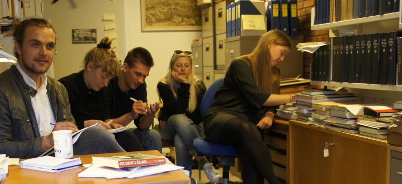 Fem studerende fra faget europæisk etnologi ved Københavns Universitet aflagde besøg som led i/forberedelse til deres feltarbejde vedr. tilflytterstuderende ved Aarhus Universitet gennem tiderne.