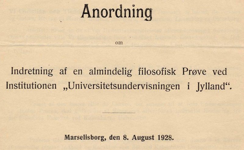På trods af et betænkningsflertals anbefaling mente regeringen ikke at have råd til at oprette et universitet i Jylland. Professor Erik Arup (KU) fik da den idé, at dr.phil Kort K. Kortsen i Reykjavik måske kunne hentes ned og ansættes som professor i filosofi mhp. at opnå eksamensret i "filosofikum", hvorved man reelt ville få en universitetsbegyndelse i Aarhus. Regering og KU overtaltes, og 8. august udstedtes den kgl. anordning, hvorpå oprettelsen af UiJ/AU byggede.