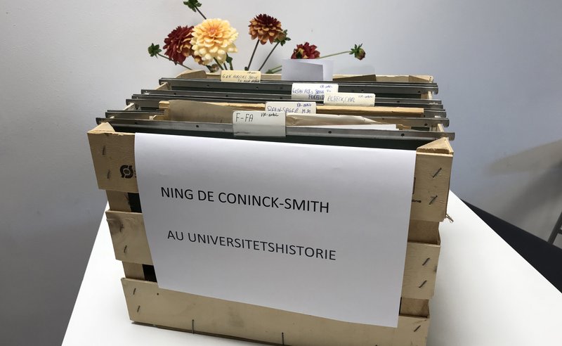Professor, dr.phil. Ning de Coninck-Smith har endnu en gang aflagt en række besøg, denne gang med henblik på studier i den ældre korrespondance om oprettelse og udvikling af Aarhus Universitet - og her ikke mindst brevene, der blev udvekslet mellem overlæge, dr.med. Victor Albeck og professor, dr.med. Knud Faber. Studiebesøgene har ikke mindst haft baggrund i ønsket om at videreudvikle det 'greb', som Ning de Coninck-Smith vil præsentere i sin tiltrædelsesforelæsning 23. november: "Universitetshistorien nyfortolket: mennesker, møder og universitet 1910-1960".