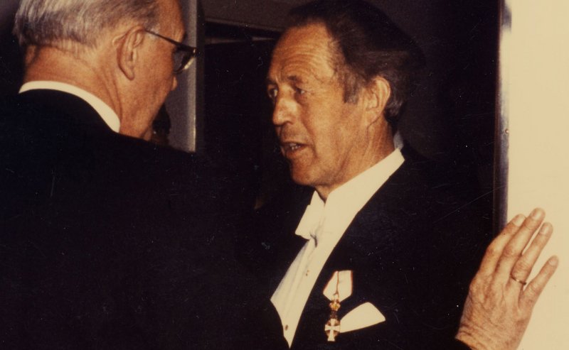 Sidste dag i oktober 2018 er det 120 år siden, C.F. Møller kom til verden. Derfor har vi valgt et foto af ham som Månedens billede, men denne gang ikke et af 'de sædvanlige', hvor universitetsarkitekten er iført et typisk 'arkitektantræk', men derimod ét, hvor han er iført kjole og hvidt og med 'sildesalat' på brystet, idet han var blevet dekoreret med Dannebrogordenen allerede i 1946, hvor Aarhus Universitets hovedbygning blev indviet. Senere skulle han modtage flere ordener. C.F. Møller blev født 31. oktober 1898.