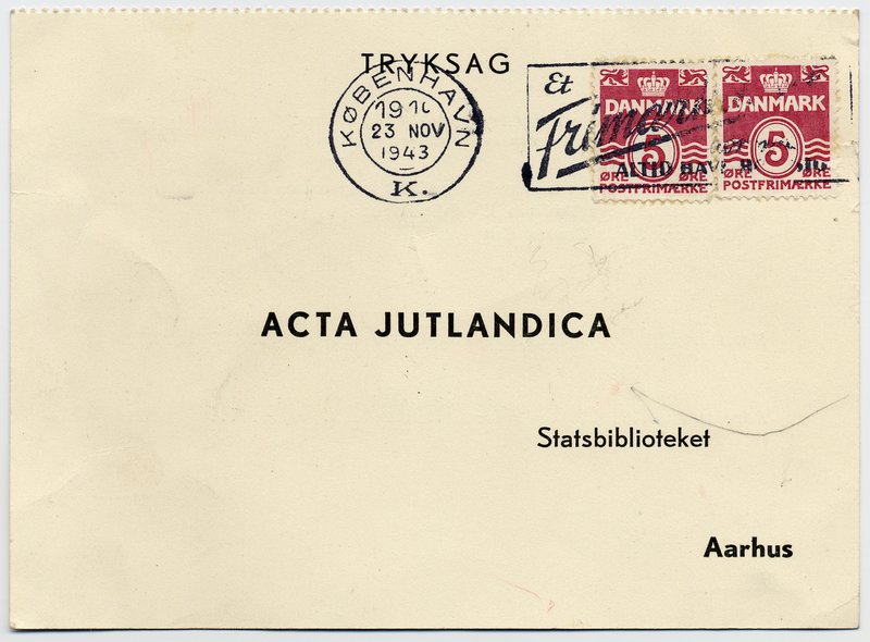 I forbindelse med oprydning i en sektion af Statsbiblioteket er et omslag med ældre materiale vedr. Acta Jutlandica tilgået Universitetshistorisk Udvalg.