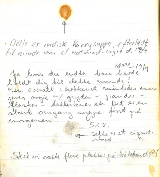 Studentermedhjælper ved ST Kommunikation Caja Lola Schou Tofft gjorde store øjne, da hun en dag i umiddelbar nærhed af skraldespandene ved Institut for Kemi fandt en kollegiekøkkenbog, der viste sig at stamme fra Kældergangen i Kollegium 3, og som omfatter perioden 1973-1979.