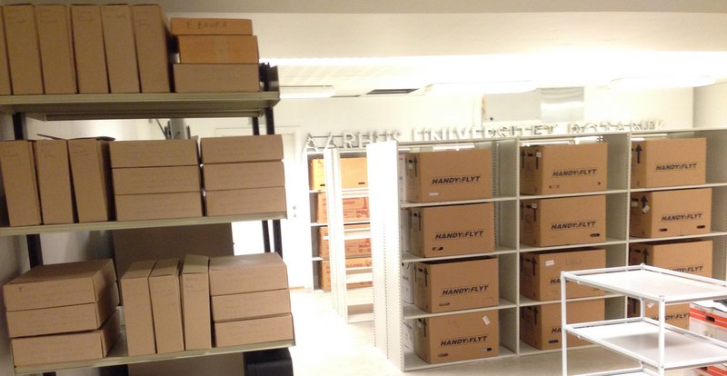 AU Universitetshistories hovedmagasin/-arkiv befinder sig stadig i Bygning 1447 og med annekser i Bygning 1448.