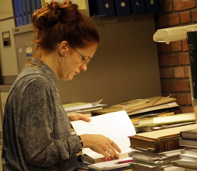 Her gjorde hun sig bekendt med, hvad der fandtes i det universitetshistoriske håndbibliotek vedrørende udflytningen i 1970 af Forhistorisk Arkæologi til den tidligere herregård Moesgård, hvor instituttet i løbet af kort tid kom til at omfatte yderligere to fag, nemlig Middelalderarkæologi samt Etnografi og Socialantropologi.