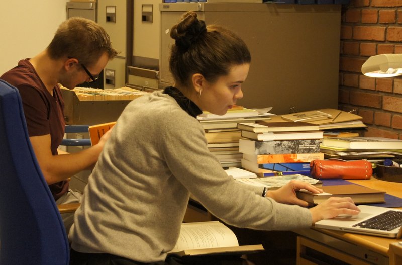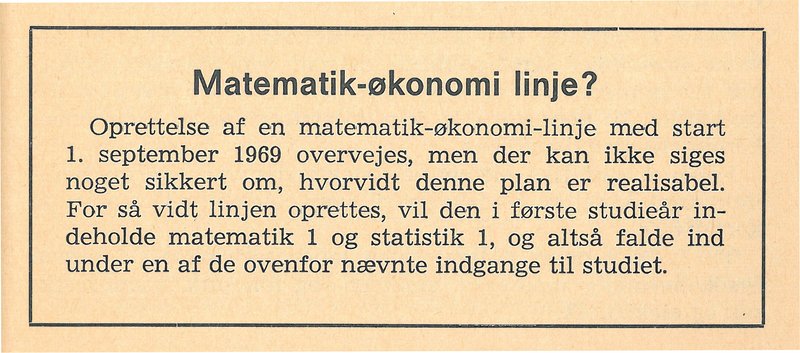 Stud.scient.oecon.erne Eva Blichfeldt Nielsen og Jens Hansen fra Institut for Matematik aflagde studiebesøg med henblik på at få opklaret, hvornår matematik-økonomi-linjen blev oprettet - det var vistnok i 1969 - og i det hele taget at finde frem til oplysninger om den nævnte uddannelses historie frem til nutiden. Altsammen med henblik på via primært trykte annaler (såsom informationsnøgler, årsberetninger, studenterhåndbøger, læseplaner etc.) at præsentere fagets historie i en institutpublikation, nemlig Giffen nr. 17-4, december 2017, hvor resultatet nu kan læses s. 14-15 ved klik her (hele bladet) eller her (kun det pågældende opslag, pdf).