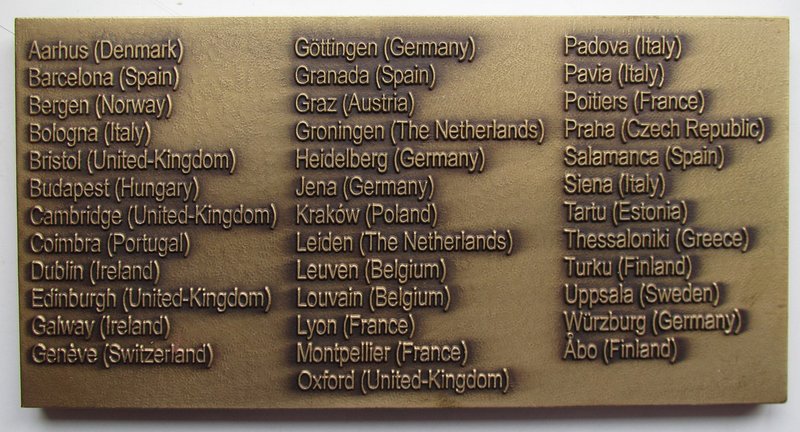 20-års-jubilæumsplakette fra Coimbra Group of Universities.
