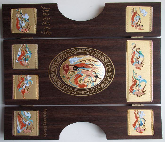 Souvenir fra Beijing Jiaotong University i form som trefløjet "altertavle".