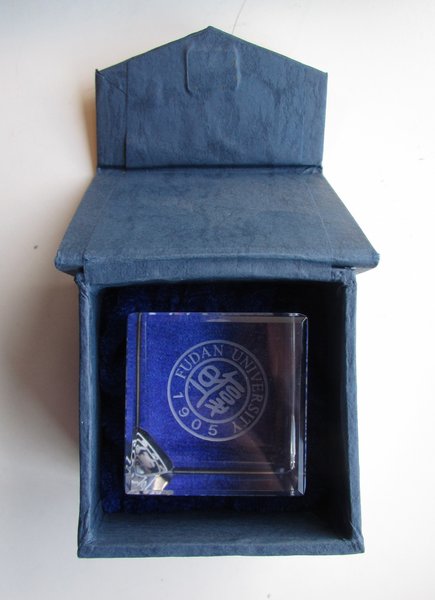 Krystalgenstand m. tekst: "Fudan University 1905" i æske.