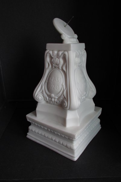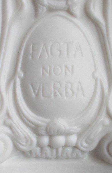 Solur på konsol i bisquit fra Tsinghua Campus under Beijing University m. inskription: "Fagta non verba" (Handling ikke ord).