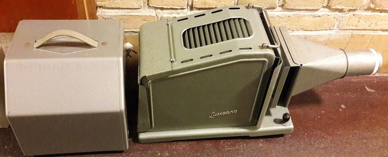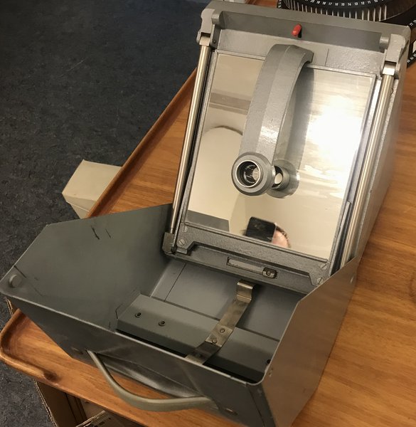 Desuden modtog vi en Zeiss Ikon Ikolux 12-diasprojektor til fremvisning af indrammede (og i dertil fremstillede kassetter anbragte) dias i småbilledformat (24 x 36 mm) fra midt i 1960'erne.