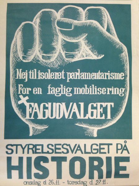 Den tredje plakat stammer fra styrelsesvalget på Historie onsdag den 26. og torsdag den 27. november 1975.