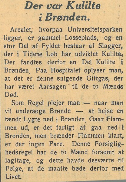 Fra Aarhus Universitets side har der forståeligt nok aldrig været gjort noget nummer ud af, at Hovedbygningen er opført på en tidligere losseplads, og heller ikke arkitekt C.F. Møller har så vidt vides udtalt sig om det, men pressen oplyste det i forbindelse med, at to bygningsarbejdere i september 1941 omkom nede i en udgravet brønd på byggepladsen. De døde nemlig af at indånde den kulilte, som havde dannet sig i affaldslagene.