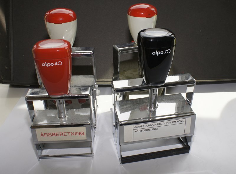 4 stempler til brug i Informationskontorets daglige virksomhed. Materialet er overdraget til Universitetshistorisk Udvalg i 2011. Klik og forstør.