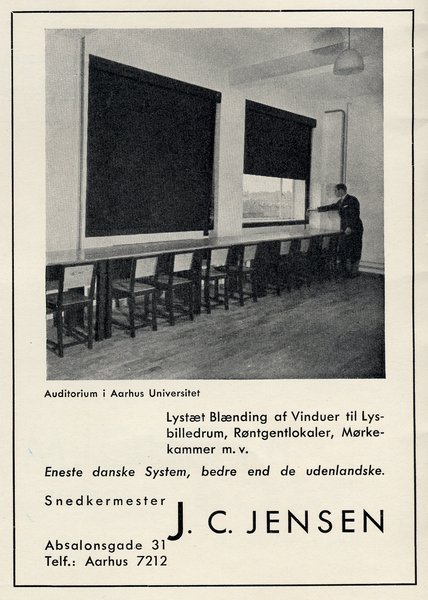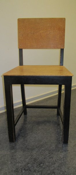 Fra et arkivrum i det tidligere teologiske fakultet er fremdraget to eksemplarer af en simpel, men solid stoletype, der blev anskaffet til brug i Aarhus Universitets første bygning. Det ene af eksemplarerne ses herover, og i annoncen til venstre ses en række eksemplarer i et auditorium på Aarhus Universitet.