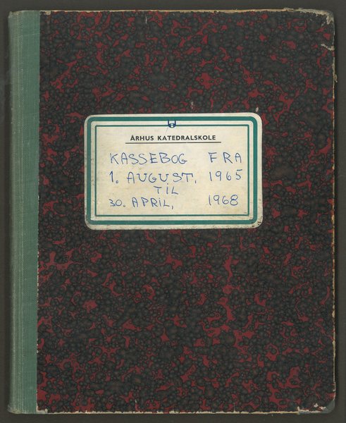 Regnskabsbog omfattende perioden 1. august 1965 til 30. april 1968. Regnskabet for de personlige indtægter og udgifter er ført af stud.jur. Finn Brøbecher, der boede på et såkaldt klubværelse i Funch Thomsensgade 10, 3. tv.