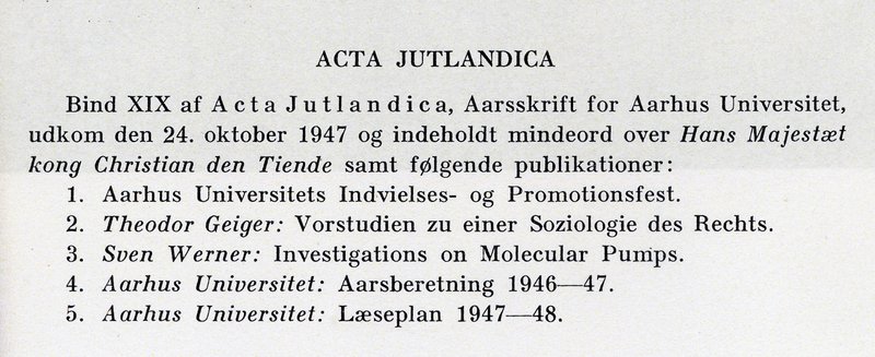 Som det fremgår, indeholdt årets ACTA JUTLANDICA Aarhus Universitets mindeord over kong Christian X.