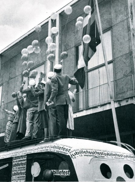 Jubillesangen lød fra højttaleren på taget af den indsamlingsbus, som kørte rundt til jyske og fynske byer for at indsamle midler til et studenterhus i Aarhus og i øvrigt gøre reklame for den forestående Jubillefest.