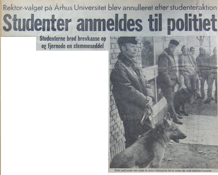 Studenterfronten saboterer det første rektorvalg efter indførelsen af Styrelsesloven ved at fjerne stemmesedler. Politiet blev for anden gang kaldt til universitetet. Studenterrådets ønske om at udsætte rektorvalget, indtil repræsentationsubalncen blandt studenterne i Konsistorium blev ikke imødekommet, og et par uger senere blev Svend Bundgaard valgt til rektor efter Søren Sørensen i det omvalg, som fandt sted som følge af de bortførte stemmesedler. Læs dagbladsartikel om dagens begivenheder.