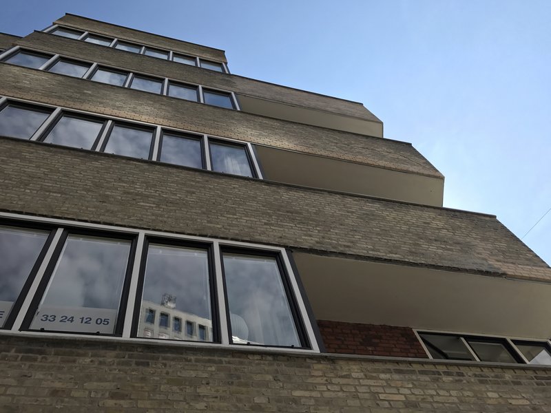 Kay Fisker havde på det tidspunkt, hvor konkurrencerne blev udskrevet, sin privatbolig på næstøverste etage – som det også fremgår af den lokale vejviser - og på etagen ovenover havde Fisker og C.F. Møller så tegnestue. Den var ikke stor, der var kun plads til 6-8 borde, men alligevel var den en af de største i København.
