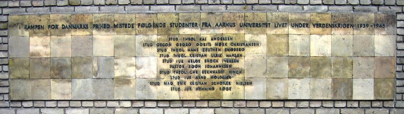 Mindetavle på den nordlige gårdsplads foran Aarhus Universitets hovedbygning. Foto Universitetshistorisk Udvalg 2009.