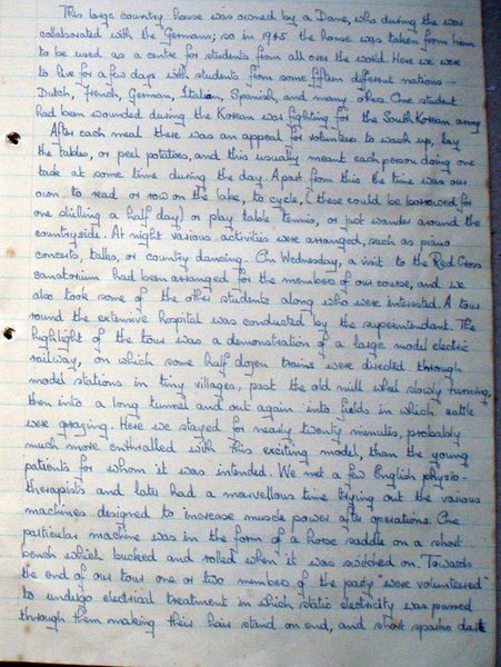 Herunder er, hvad han skrev om turen til og dagene på Internationalt Studentercenter Hald i august det nævnte år.