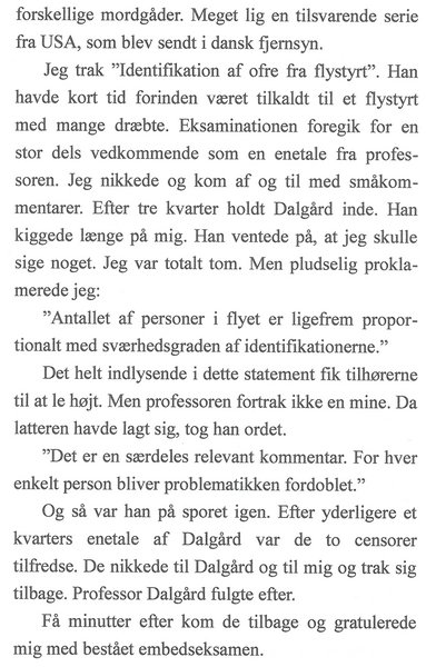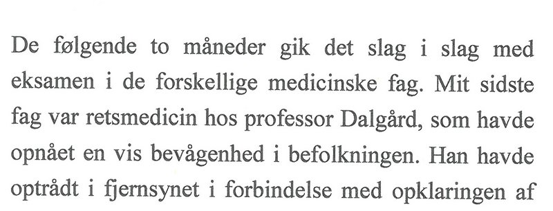Hos retsmedicineren Jørgen Brems Dalgaard var det iflg. Birger Møller ikke nødvendigt for eksaminanden selv at sige ret meget. Her er beretningen om den afsluttende eksamen til den medicinske kandidateksamen: