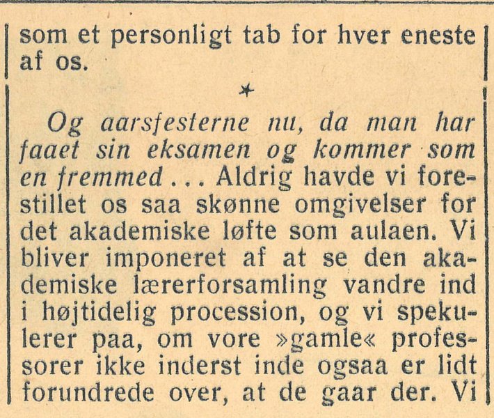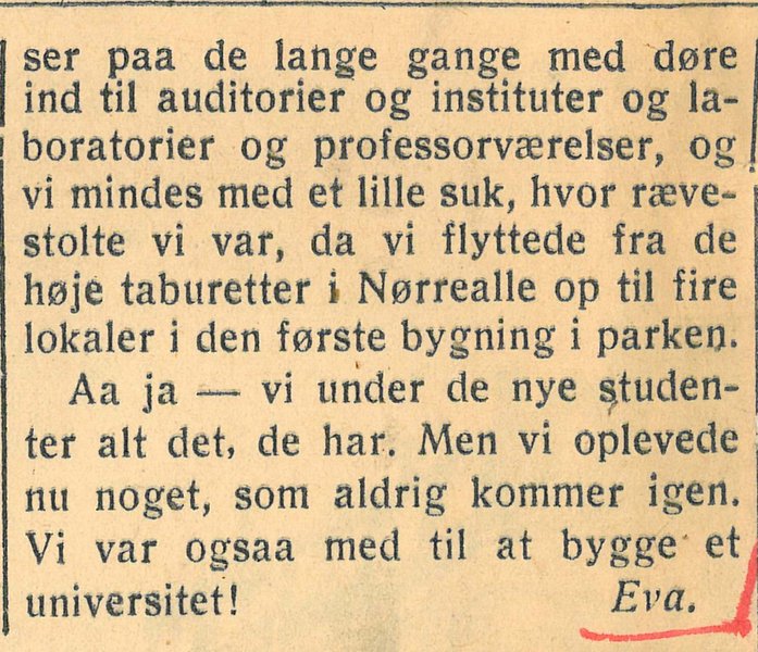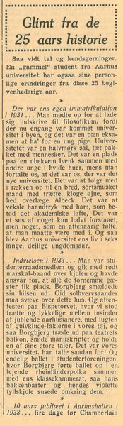 Udklippet er sakset fra en helsides-artikel i Demokraten 6. september 1953, dvs. i forbindelse med opvarmningen til Aarhus Universitets 25-års jubilæum. Artiklens første ytring henviser til avissidens øvrige indhold.