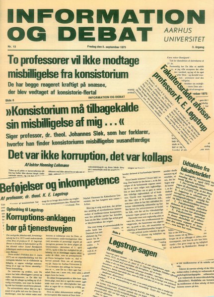 "Godt, tænkte jeg, lad mig så demonstrere, at med forsamlingerne på universitetet kan man ikke længere forhandle rationelt og urbant. Man kan kun føre sager. - Altså anlagde jeg sag, klagede til ministeriet og direktoratet - og vandt sagen. Konsistorium fik en "næse" af direktoratet, og jeg (og Løgstrup) var rehabiliteret."