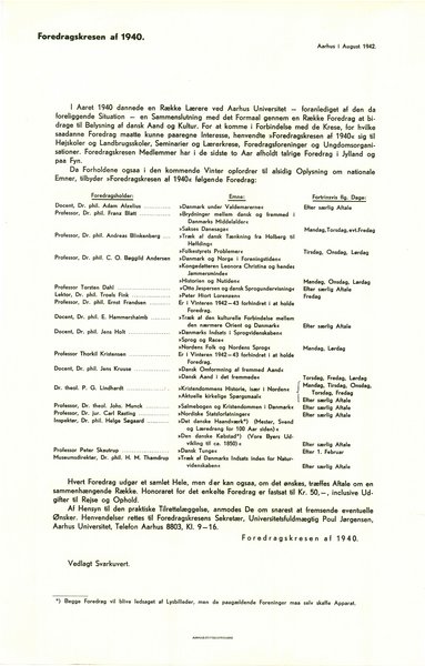 Tilbud efterår 1942 fra Foredragskresen af 1940