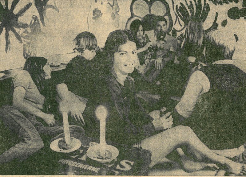 Et af Studenterforeningens arrangementer i forbindelse med promoveringen af den frie seksualitet bestod i indretningen af et midlertidigt "elskovsrum" i Studenternes Hus. Billedet her blev bragt i den socialdemokratiske presse 6. september 1969. (Efter udklip tilhørende Universitetshistorisk Udvalg).